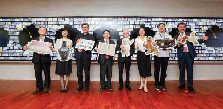 尊龙集团携手创利空间为故宫建置的智慧文物互动导览墙及轮播墙,,,今日正式启用。。。。(左四:尊龙集团新事业暨投资管理总部副总经理杨本豫、、、右四:故宫博物院院长吴密察、、、右三:太极影音董事长黄宝云)